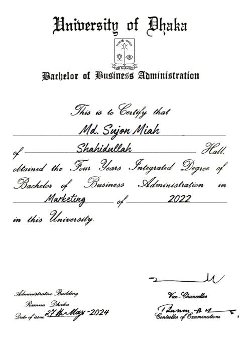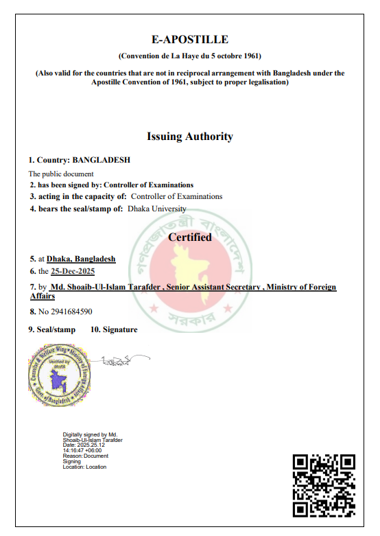 সনদপত্র/নম্বরপত্র/একাডেমিক ট্রান্সক্রিপ্ট/ডকুমেন্টস
